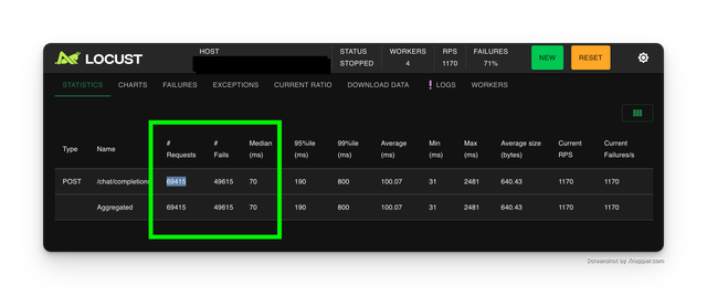 Note: we're currently migrating to aiohttp which has 10x higher throughput. We recommend using the aiohttp_openai/ provider for load testing.