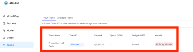 to the LiteLLM Enterprise App. The next step is having LiteLLM automatically create the Production LLM Evals Group